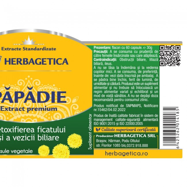 Extract 4:1 din rădăcini de Păpădie (Taraxacum officinale) | 400 mg |